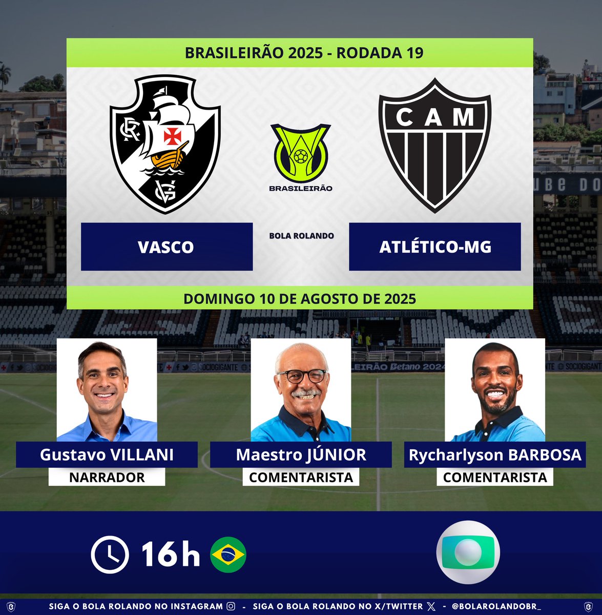 Conheça os especialistas que estarão na transmissão de Vasco x Atlético-MG na televisão. domingo, 10/08/2025 às 11:52 — Em Últimas notícias