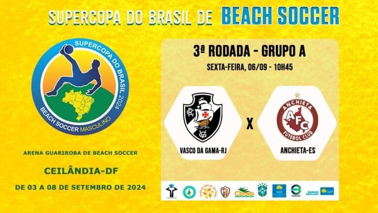 Neste sábado, às 18h30, o campeonato de Futebol de Areia promete emoções fortes com o confronto entre Vasco e Vitória na semifinal da Supercopa do Brasil. As duas equipes buscam a vitória para avançar à final e garantir um