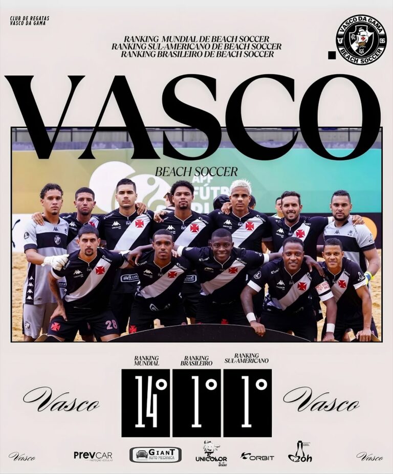 🏐🌊 **Futebol de Praia em Alta!** O Vasco ocupa a 14ª posição no ranking global e se destaca como o melhor time sul-americano! Vamos, Vasco! 💪⚽ #FutebolDePraia #Vasco #OrgulhoVascoeiro