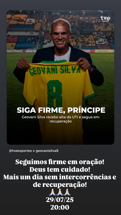 Geovani passa mais um dia sem complicações e em plena recuperação. terça-feira, 29/07/2025 às 20:43 — Em Últimas notícias