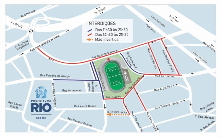 CET-Rio informa sobre bloqueios nas proximidades de São Januário para a partida Vasco x Botafogo sábado, 22/02/2025 às 23:29 — Em Últimas notícias