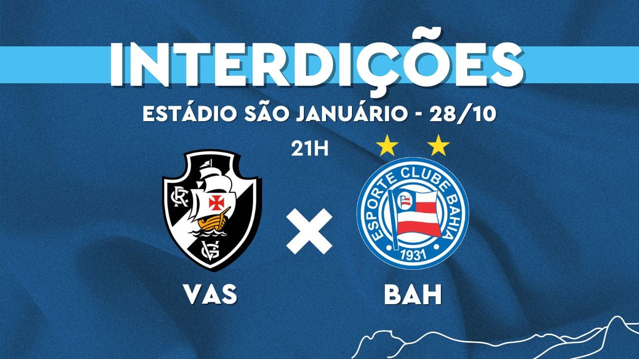 Prefeitura informa sobre interdições nas proximidades de São Januário para o jogo Vasco x Bahia segunda-feira, 28/10/2024 às 12:51 — Em Últimas notícias