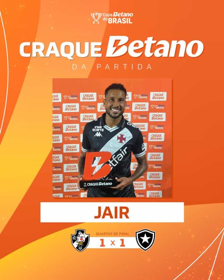 Jair é eleito o ‘Craque Betano’ após empate entre Vasco e Botafogo quinta-feira, 28/08/2025 às 01:30 — Em Últimas notícias