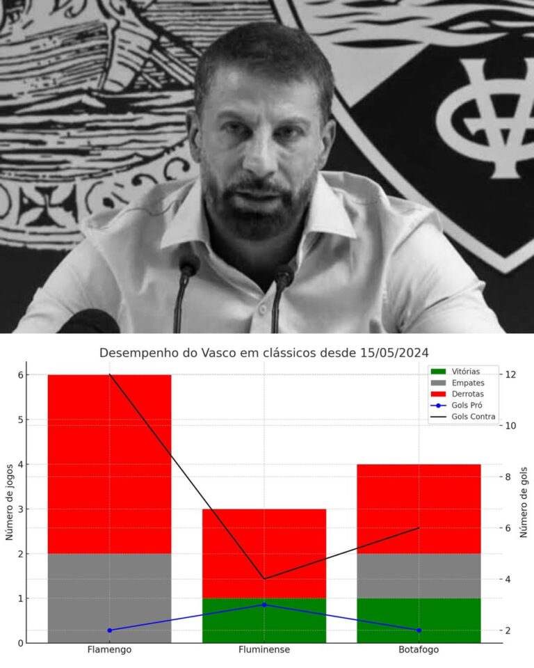 Na gestão de Pedrinho à frente da SAF, o Vasco registra aproximadamente 23% de aproveitamento em clássicos. segunda-feira, 14/07/2025 às 07:05 — Em Últimas notícias
