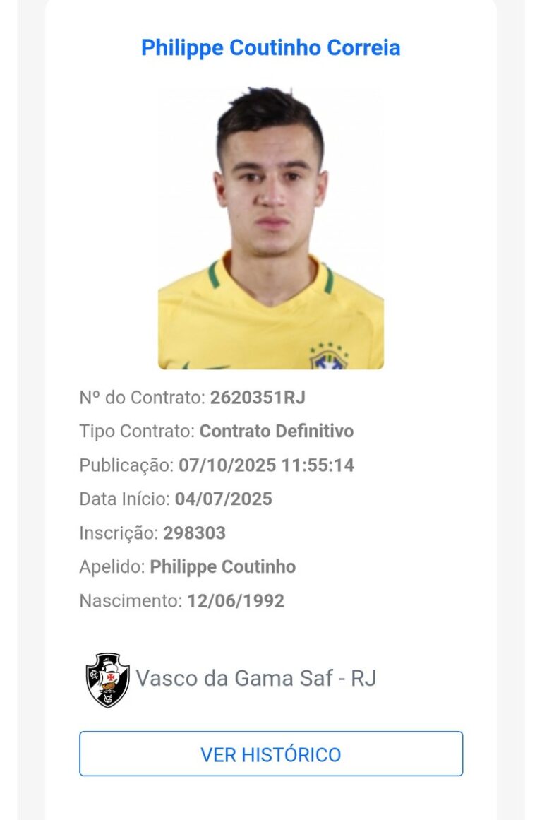 Registro do novo contrato de Philippe Coutinho no BID permite que o jogador enfrente o Botafogo. quinta-feira, 10/07/2025 às 12:35 — Em Últimas notícias