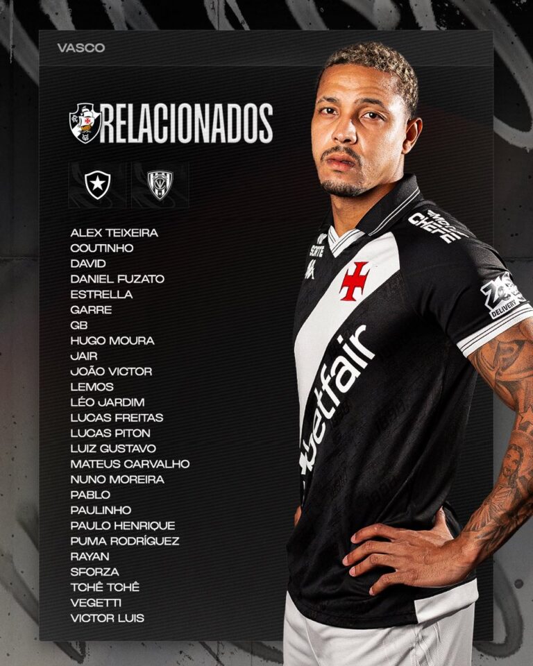 Vasco anuncia os jogadores convocados para as partidas contra Botafogo e Del Valle. sexta-feira, 11/07/2025 às 14:22 — Em Últimas notícias