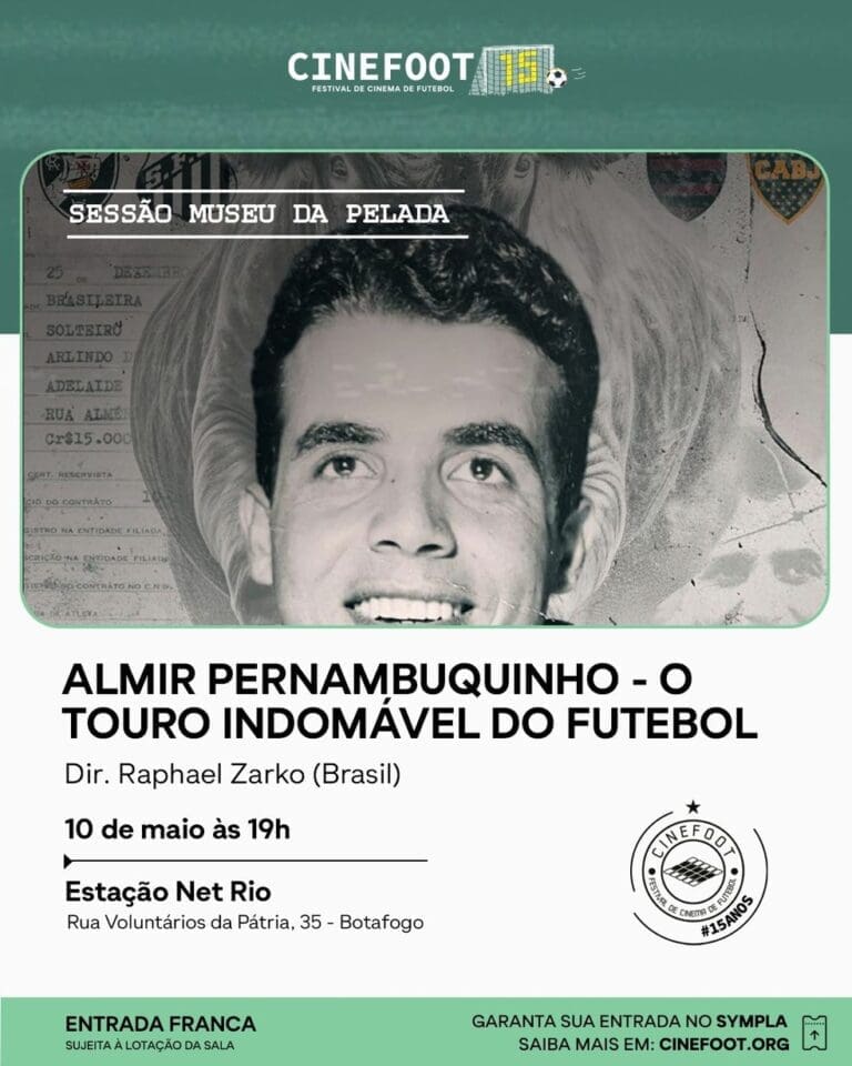 CineFoot exibirá filme sobre Almir Pernambuquinho, ícone do Vasco nos anos 50, neste sábado às 19h em Botafogo. quinta-feira, 08/05/2025 às 13:10 — Em Últimas notícias