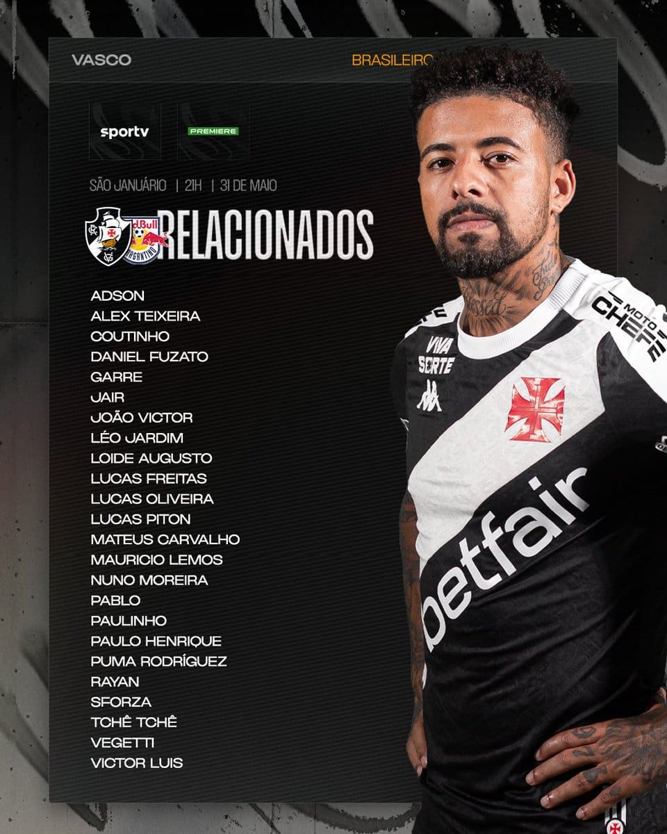 Reveja os convocados do Vasco para a partida contra o Red Bull Bragantino. sábado, 31/05/2025 às 18:03 — Em Últimas notícias