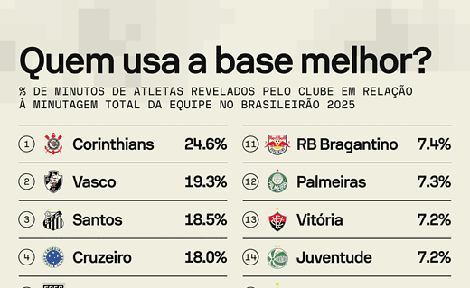 Vasco foi o 2º time com maior percentual de utilização da base no Brasileiro sábado, 03/01/2026 às 17:34 — Em Últimas notícias