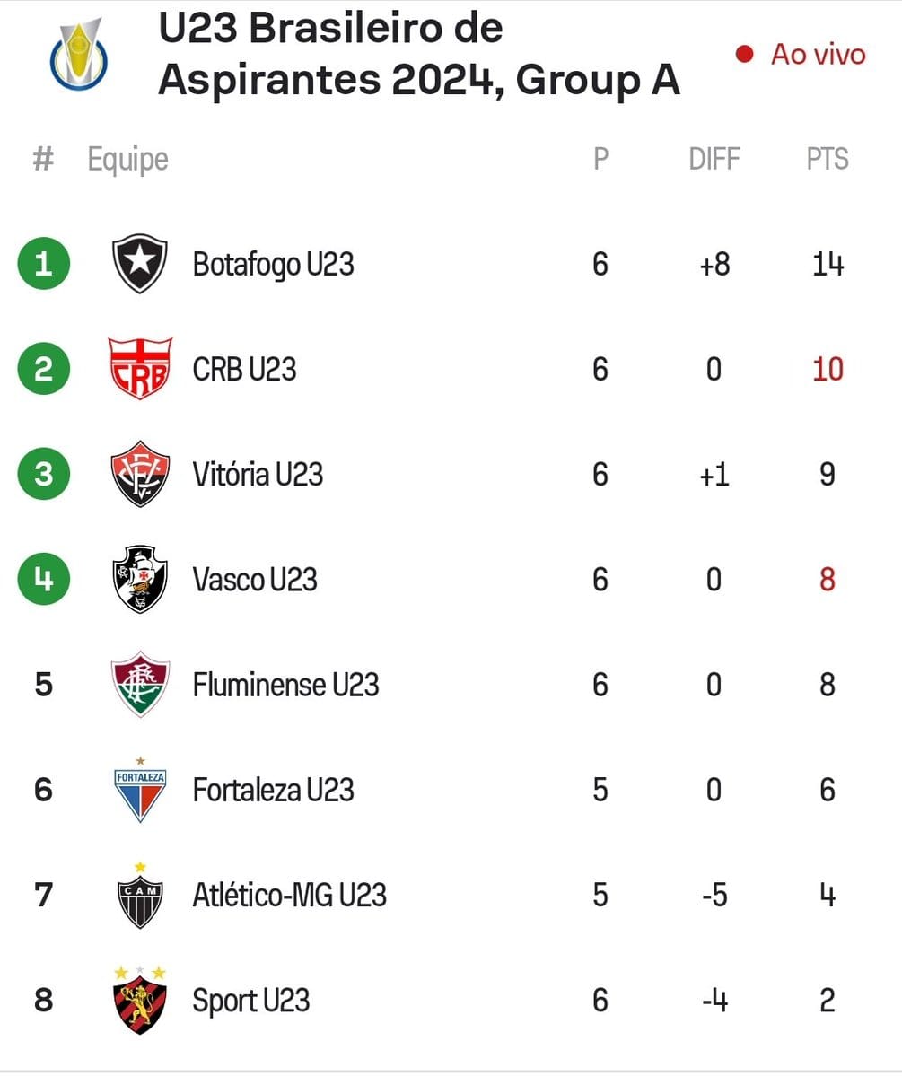 Sub-23: Vasco conquista vitória de 3 a 1 sobre o CRB fora de casa no Brasileiro de Aspirantes e avança para a 4ª posição no Grupo A segunda-feira, 28/10/2024 às 17:12 — Em Últimas notícias