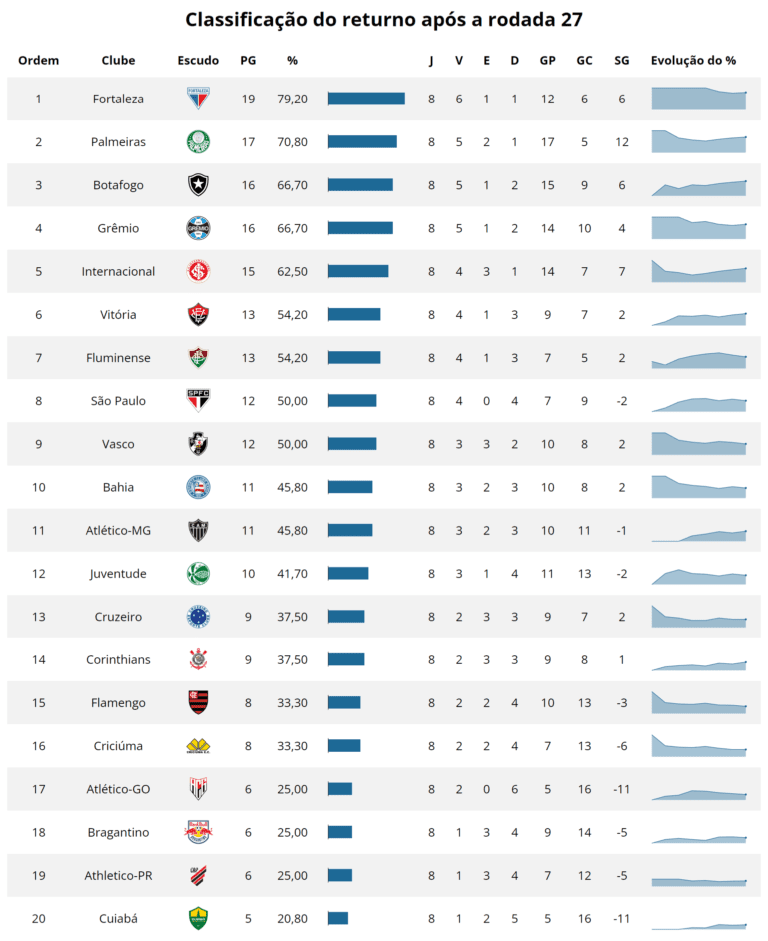 Vasco permanece na 9ª posição do Campeonato Brasileiro após os confrontos da 27ª rodada realizados no sábado. sábado, 21/09/2024 às 23:03 — Em Destaques