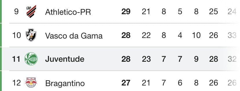 Vasco mantém a 10ª posição no Brasileiro após os jogos de sábado da 24ª rodada sábado, 24/08/2024 às 23:02 — Em Últimas notícias