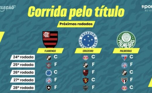 Candidatos ao título do Brasileiro: Flamengo, Cruzeiro e Palmeiras enfrentam o Vasco em sequência. terça-feira, 16/09/2025 às 18:48 — Em Últimas notícias