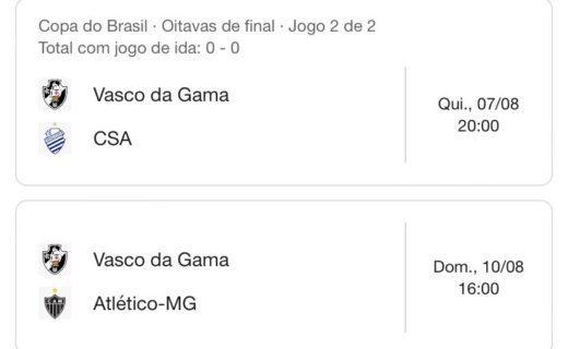 Os dois próximos confrontos do Vasco ocorrerão em São Januário, válidos pela Copa do Brasil e pelo Campeonato Brasileiro. segunda-feira, 04/08/2025 às 07:40 — Em Últimas notícias