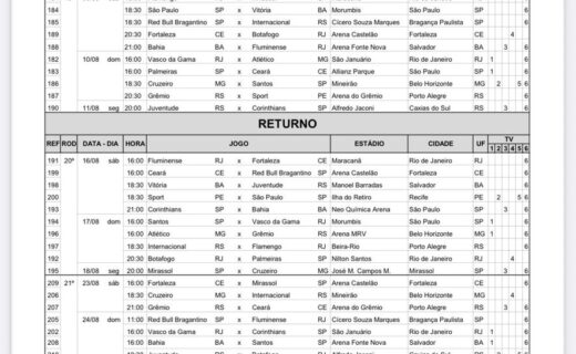 CBF anuncia detalhes das rodadas do Campeonato Brasileiro e adia Vasco x CSA, pela Copa do Brasil, de 05 para 07/08. sexta-feira, 25/07/2025 às 19:20 — Em Últimas notícias