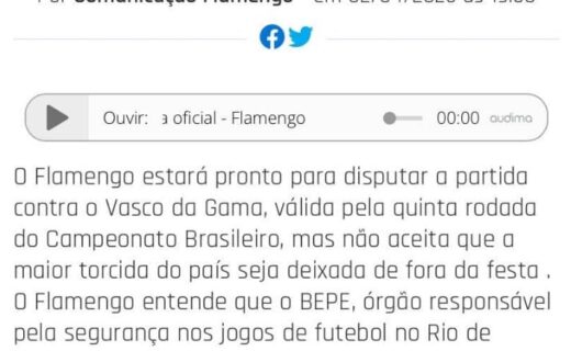 Em comunicado, Flamengo expressa o desejo de contar com sua torcida no estádio durante a partida contra o Vasco, válida pela 5ª rodada do Campeonato Brasileiro; o clássico pode acontecer em São Januário. quarta-feira, 02/04/2025 às 20:04 — Em Últimas notícias