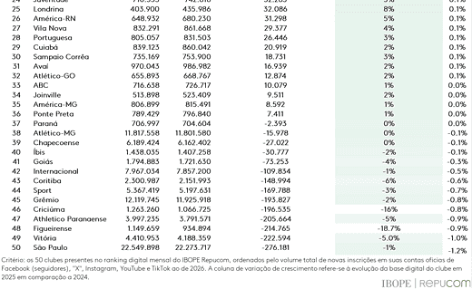 Vasco permanece na 6ª posição do ranking digital dos clubes brasileiros sexta-feira, 09/01/2026 às 15:47 — Em Últimas notícias