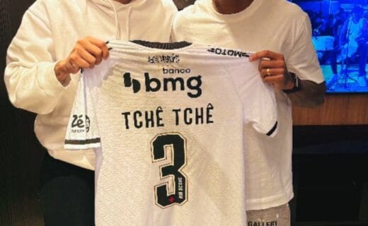 Tchê Tchê presenteia o atacante Dentinho com a camisa do Vasco quinta-feira, 19/06/2025 às 10:11 — Em Últimas notícias
