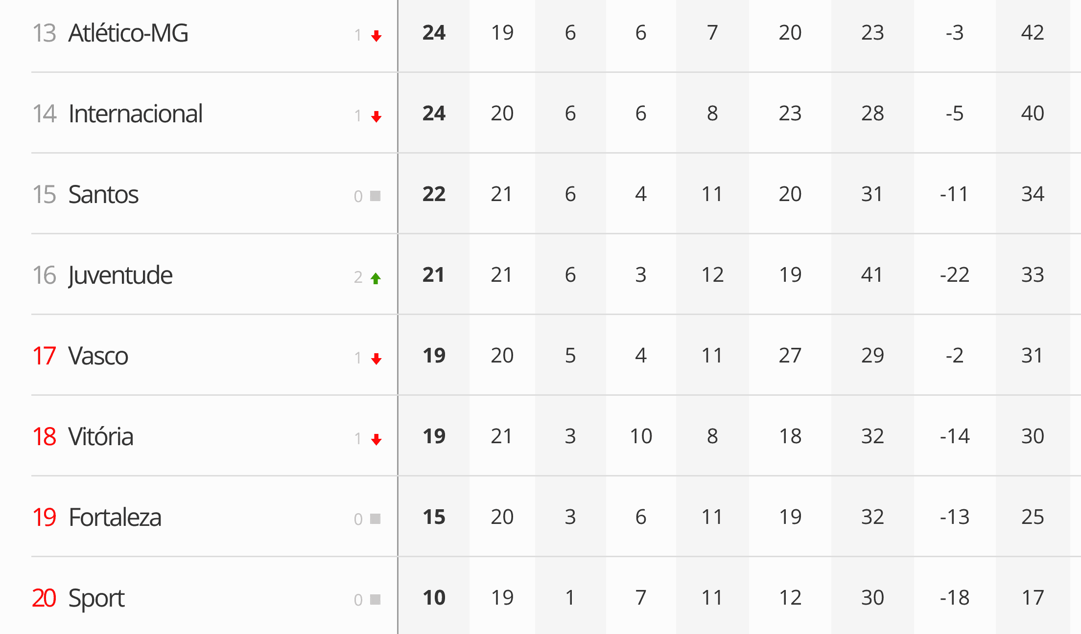 Vasco na 17ª colocação do Brasileiro após jogos da 21ª rodada sábado, 30/08/2025 às 23:15 — Em Últimas notícias