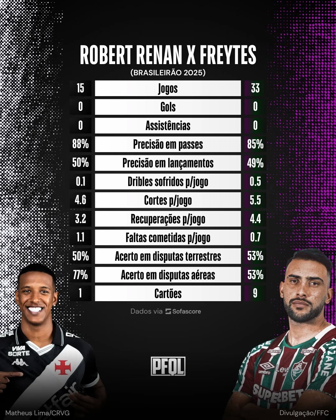 Veja a comparação entre os números de Robert Renan e Freytes no Brasileirão 2025. sábado, 13/12/2025 às 23:35 — Em Últimas notícias