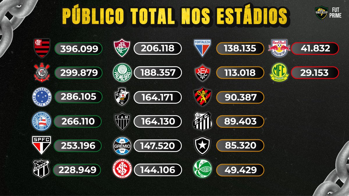 Vasco ocupa a 9ª posição no ranking de público geral do Brasileiro em partidas em casa. sábado, 19/07/2025 às 13:46 — Em Últimas notícias