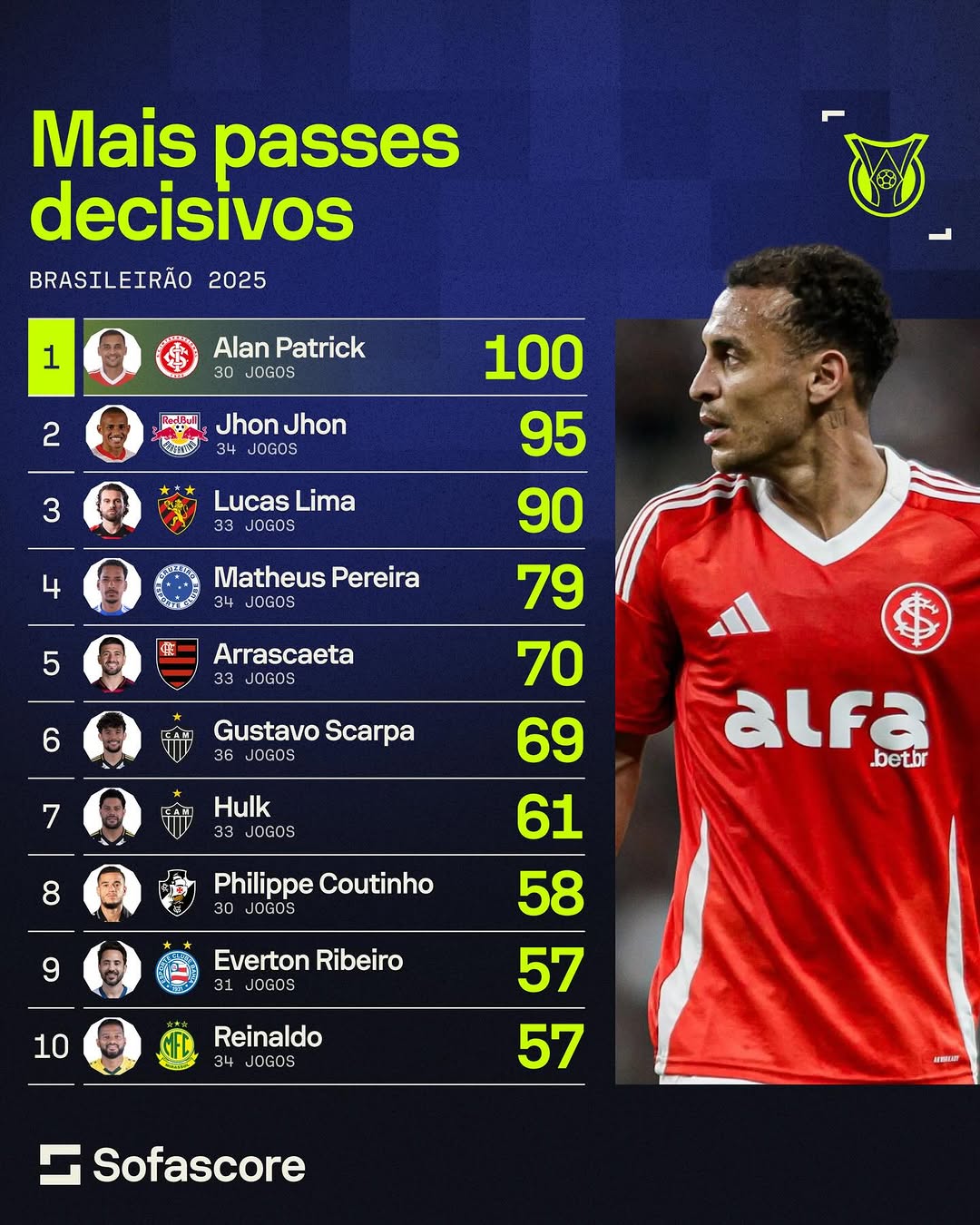 Philippe Coutinho ficou na 8ª posição entre os jogadores com mais assistências no Brasileiro 2025. terça-feira, 09/12/2025 às 07:06 — Em Últimas notícias