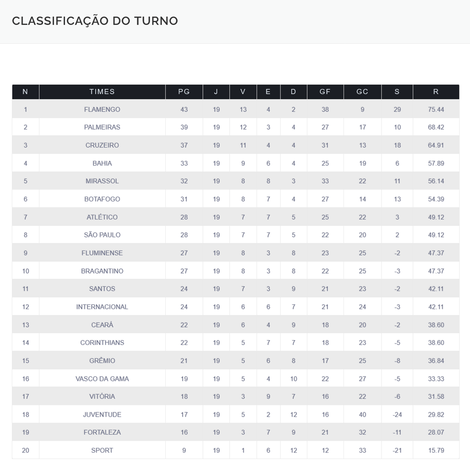 Vasco terminou na 16ª posição no primeiro turno e na 11ª no segundo turno do Campeonato Brasileiro. terça-feira, 09/12/2025 às 11:24 — Em Últimas notícias