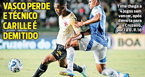 Confira as manchetes dos jornais após a perda do Vasco para o Cruzeiro e a saída de Fábio Carille. terça-feira, 29/04/2025 às 00:52 — Em Últimas notícias