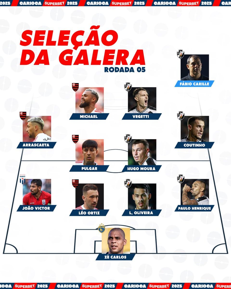 Paulo Henrique, Lucas Oliveira, Hugo Moura, Coutinho, Vegetti e Carille fazem parte da #SeleçãoDaGalera da 5ª rodada do Campeonato Carioca. terça-feira, 28/01/2025 às 19:40 — Em Últimas notícias