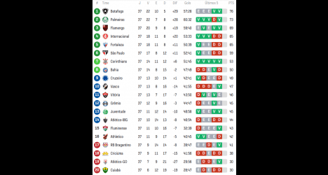 Vasco encerra a 37ª rodada do Campeonato Brasileiro na 10ª posição. quinta-feira, 05/12/2024 às 22:33 — Em Últimas notícias