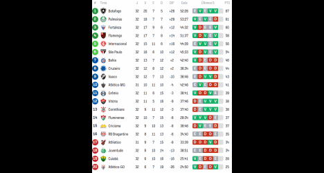 Vasco finaliza a 32ª rodada do Campeonato Brasileiro na 9ª posição, a apenas 3 pontos do G7. quarta-feira, 06/11/2024 às 23:35 — Em Últimas notícias