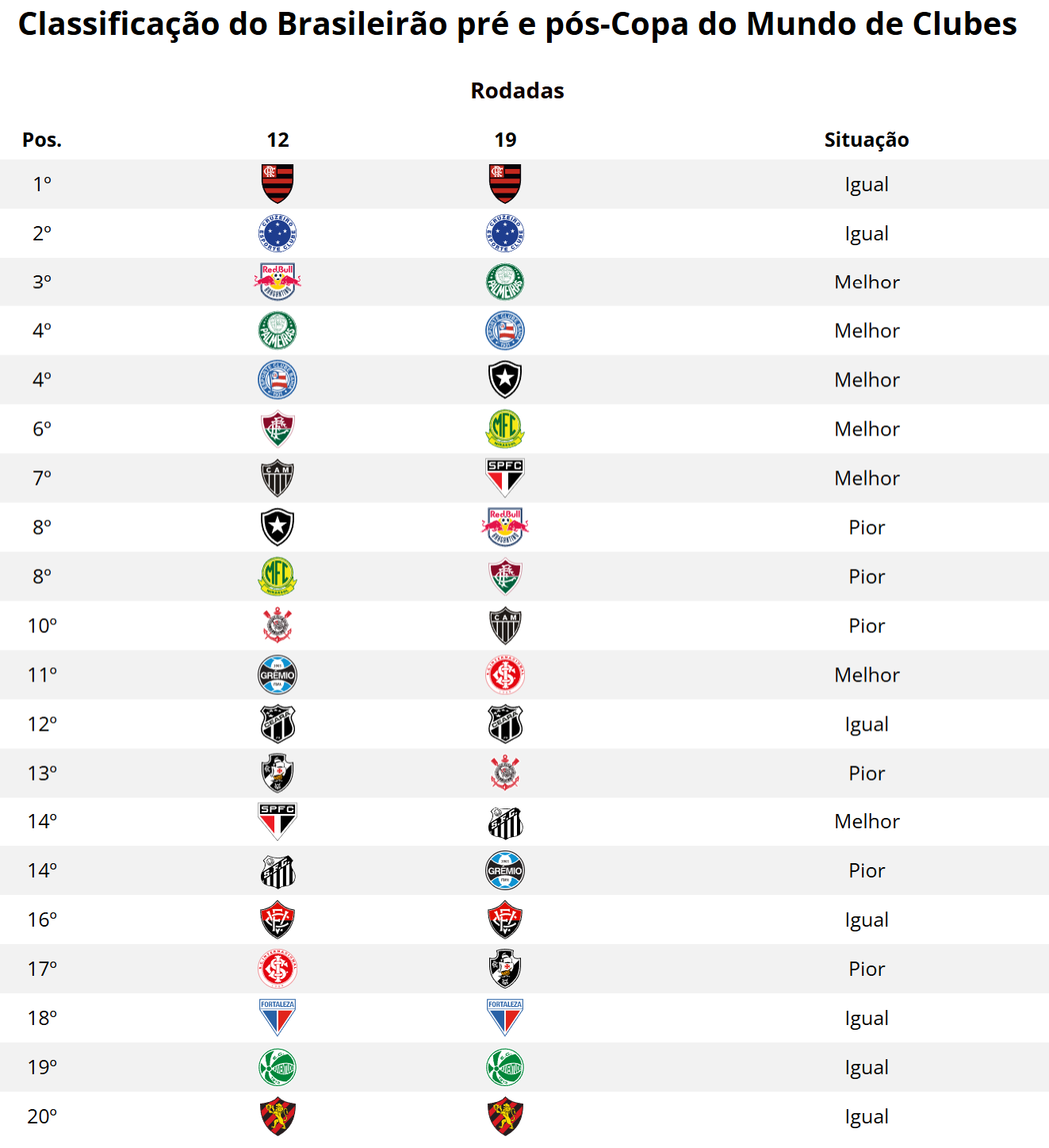 Após a pausa para a Copa do Mundo de Clubes, Vasco despencou 4 colocações na tabela do Brasileiro. domingo, 17/08/2025 às 07:23 — Em Últimas notícias