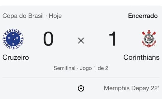 Corinthians derrota o Cruzeiro por 1 a 0 no Mineirão na partida de ida da semifinal da Copa do Brasil. quarta-feira, 10/12/2025 às 23:37 — Em Últimas notícias