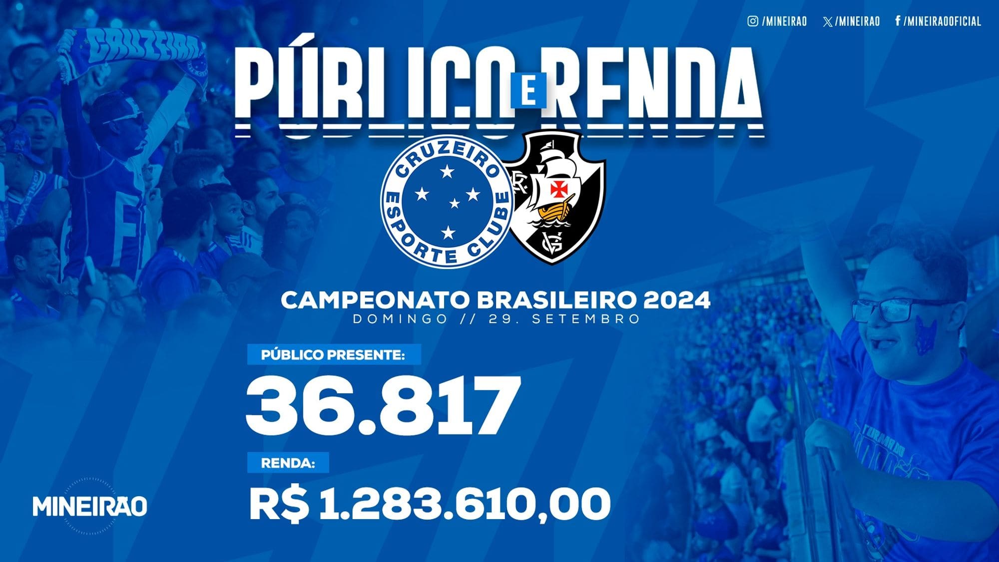 Mineirão recebeu 36.817 espectadores para o jogo entre Cruzeiro e Vasco. domingo, 29/09/2024 às 20:37 — Em Últimas notícias