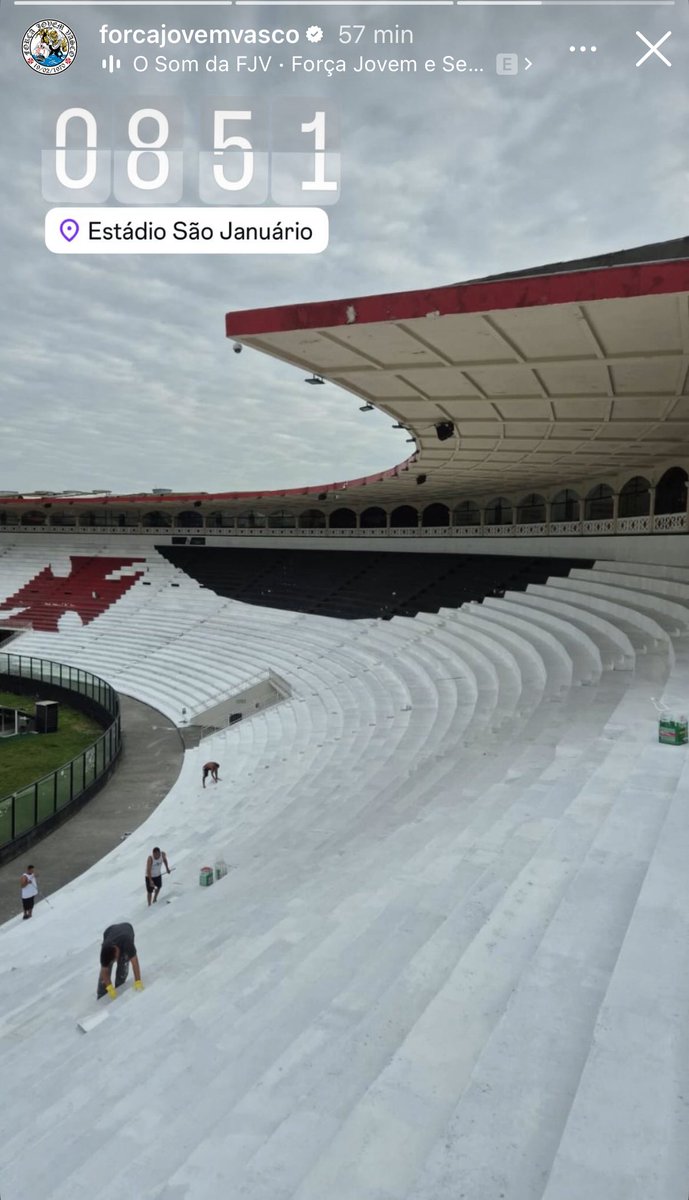 Confira o progresso da pintura nas arquibancadas de São Januário. sábado, 12/07/2025 às 10:16 — Em Últimas notícias