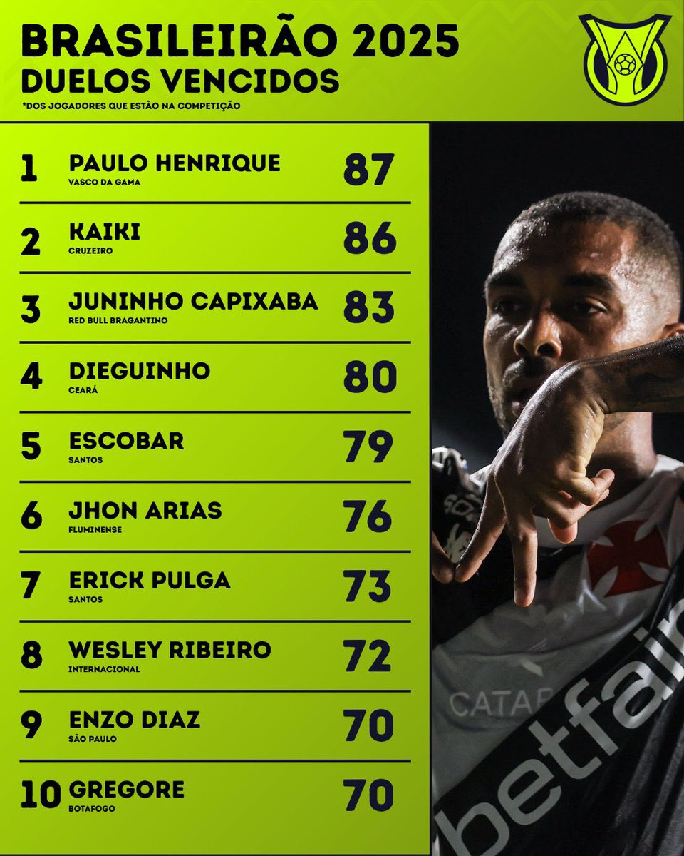 Paulo Henrique se destaca como o atleta com o maior número de confrontos conquistados no Campeonato Brasileiro de 2025. quinta-feira, 10/07/2025 às 17:43 — Em Últimas notícias