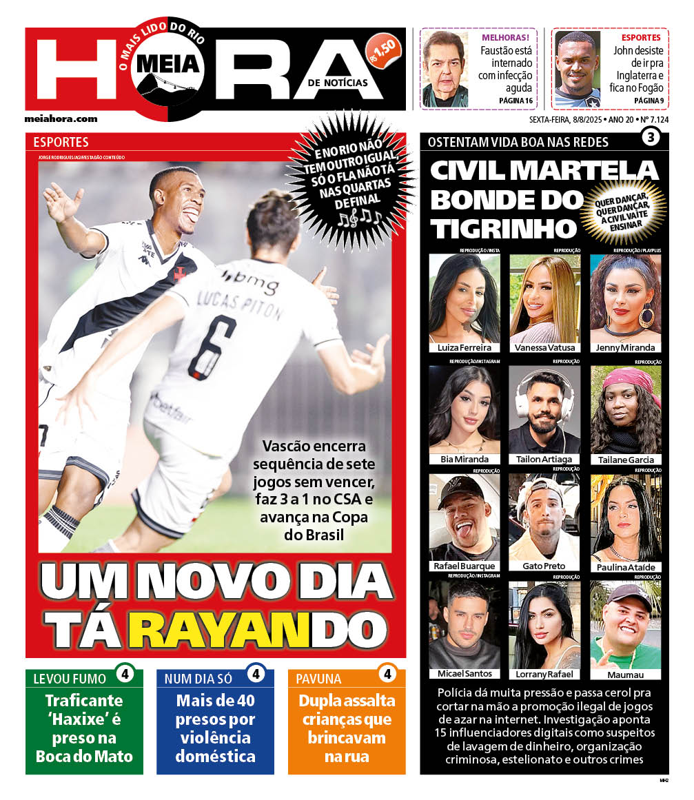 Confira as primeiras páginas dos jornais após a partida Vasco 3 x 1 CSA. sexta-feira, 08/08/2025 às 08:47 — Em Últimas notícias