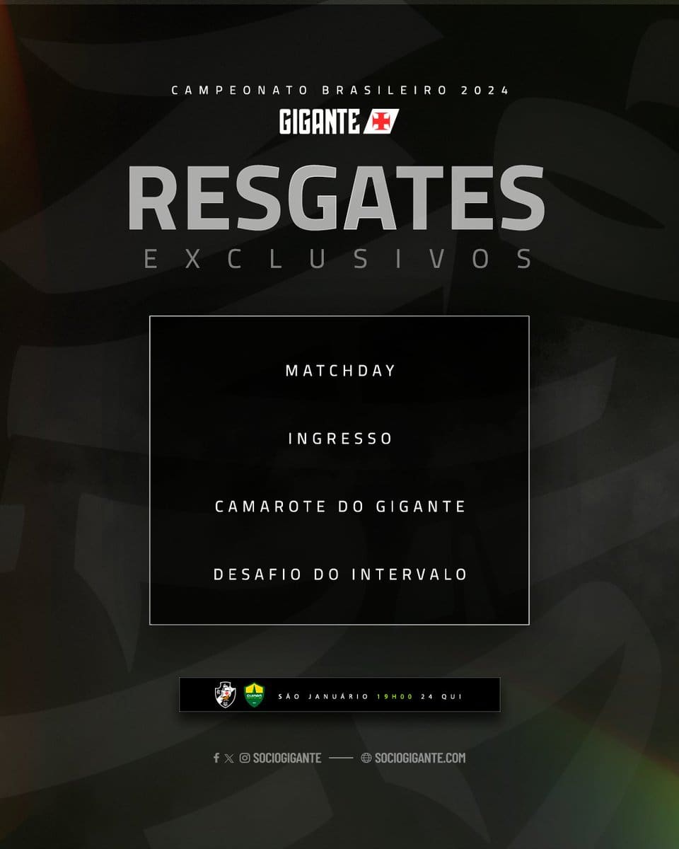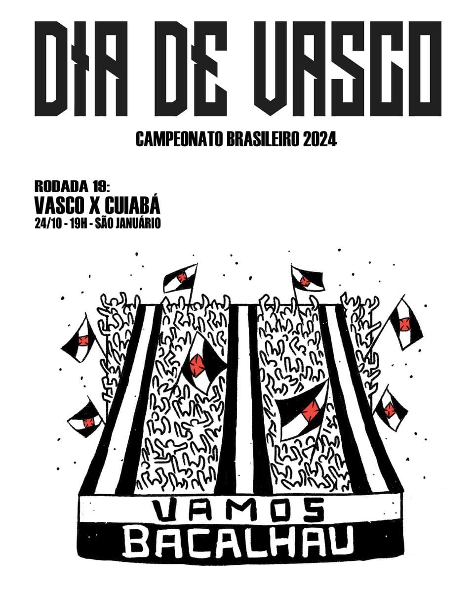 Confira a arte promocional do jogo Vasco x Cuiabá. quinta-feira, 24/10/2024 às 00:03 — Em Últimas notícias
