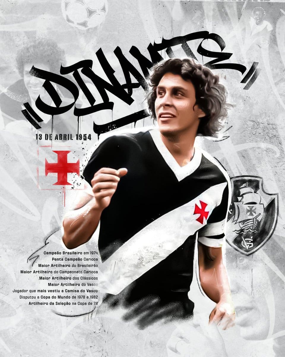 Vasco presta homenagem a Roberto Dinamite: ‘Hoje celebramos 71 anos do nascimento de Carlos Roberto de Oliveira, nosso Eterno Camisa 10’ domingo, 13/04/2025 às 10:16 — Em Últimas notícias