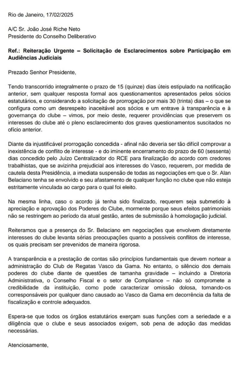 O presidente do São Paulo se manifestou sobre a suposta negociação entre Vasco e o empresário Marinakis, afirmando que não possui informações sobre o assunto. A declaração busca esclarecer rumores que têm circulado nos bastidores do futebol, reforçando a posição