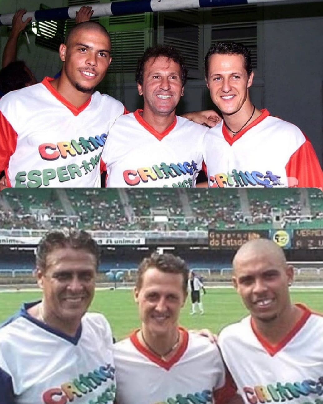 Dinamite participou de um jogo beneficente em 2001 ao lado de Ronaldo, Zico e Michael Schumacher; confira a foto. segunda-feira, 06/01/2025 às 04:25 — Em Últimas notícias