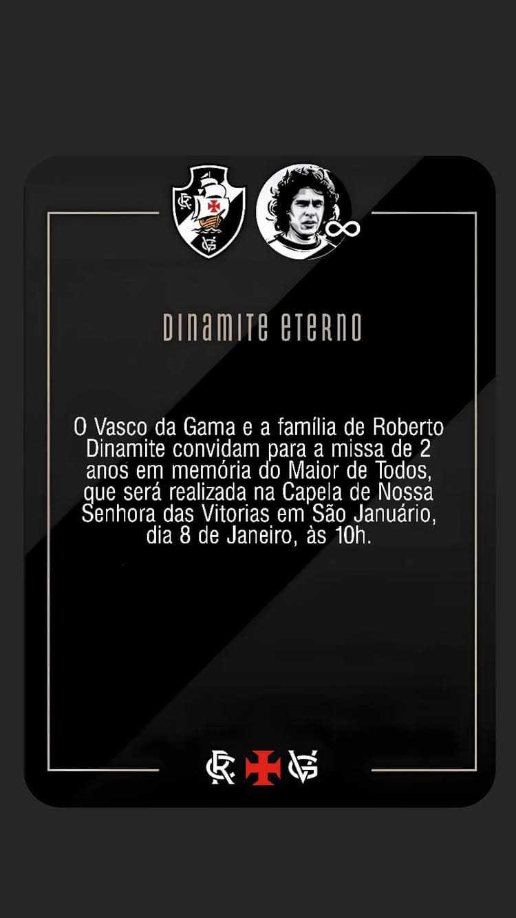 Ninguém da diretoria do Vasco compareceu à missa de 2 anos pela morte de Roberto Dinamite, revela o filho dele. quarta-feira, 08/01/2025 às 23:05 — Em Últimas notícias
