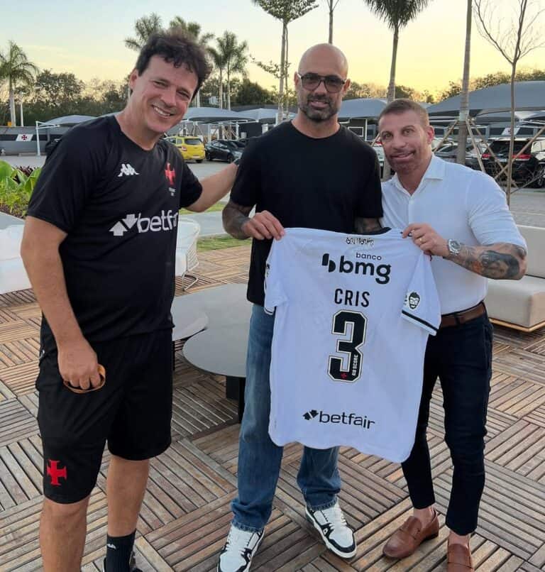 Cris é recebido no CT do Vasco e gera expectativa entre os torcedores ao lado de Diniz e Pedrinho.