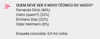 Fernando Diniz, Pedro Caixinha, Ramón Díaz e Tite estariam sendo analisados pelo Vasco para substituir Fábio Carille. segunda-feira, 28/04/2025 às 09:42 — Em Últimas notícias
