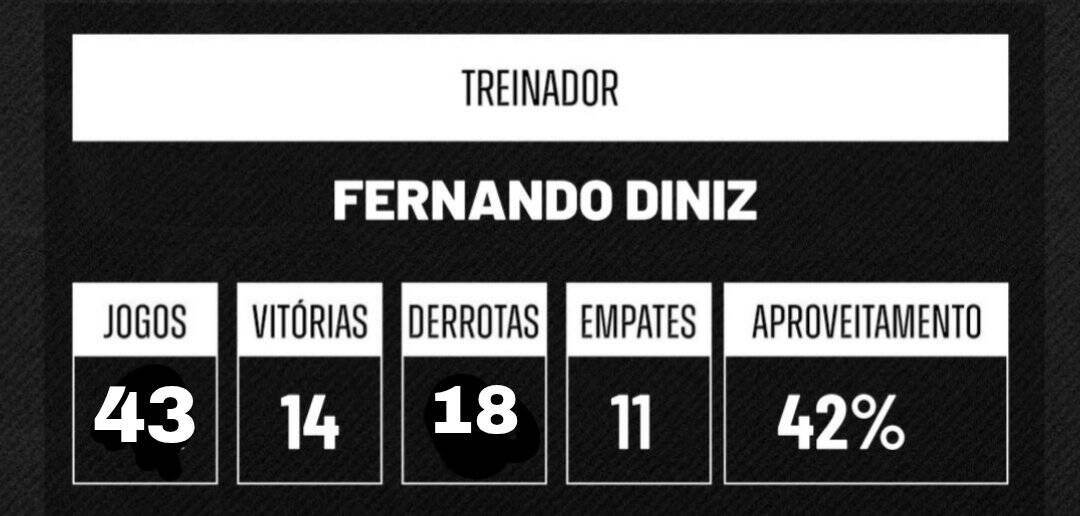 Aproveitamento de Fernando Diniz em Campeonatos Brasileiros pelos times que treinou quarta-feira, 24/12/2025 às 01:30 — Em Últimas notícias