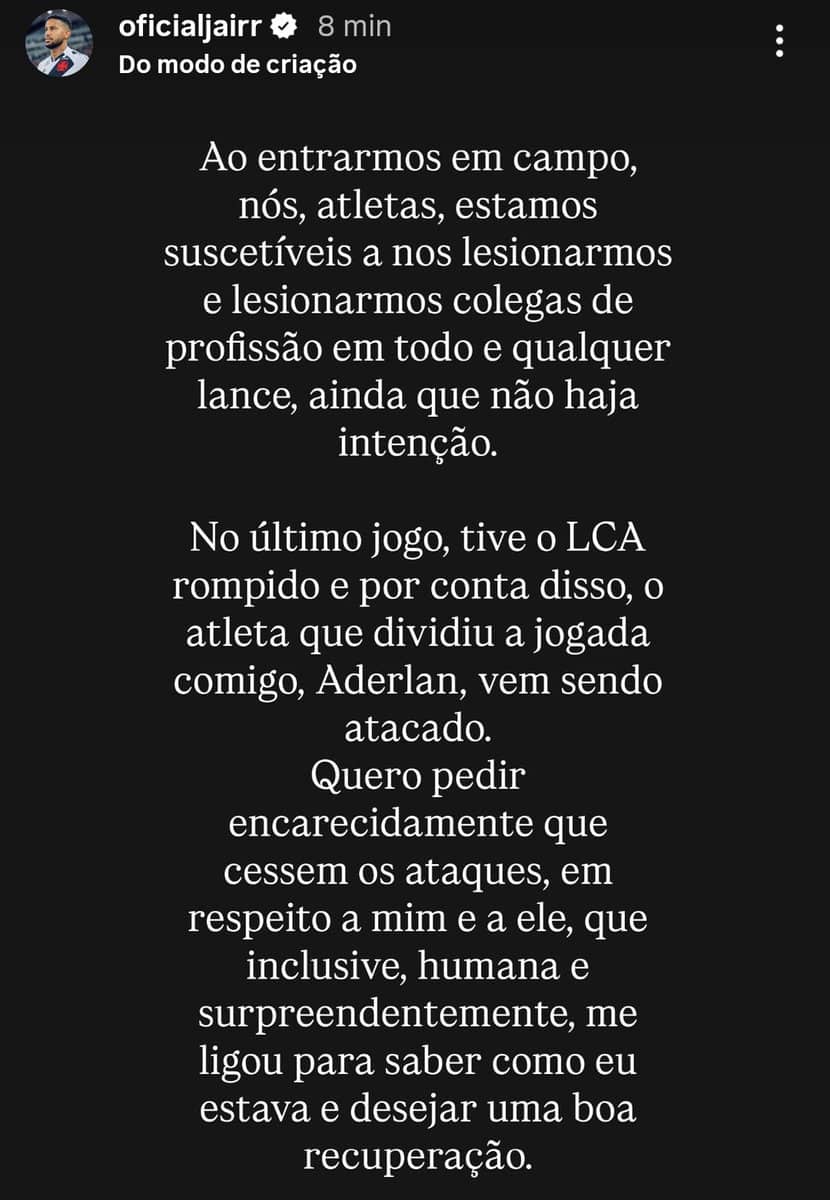 Grave lesão de Jair em 2024 foi no joelho esquerdo; entorse foi no direito segunda-feira, 01/09/2025 às 00:24 — Em Últimas notícias