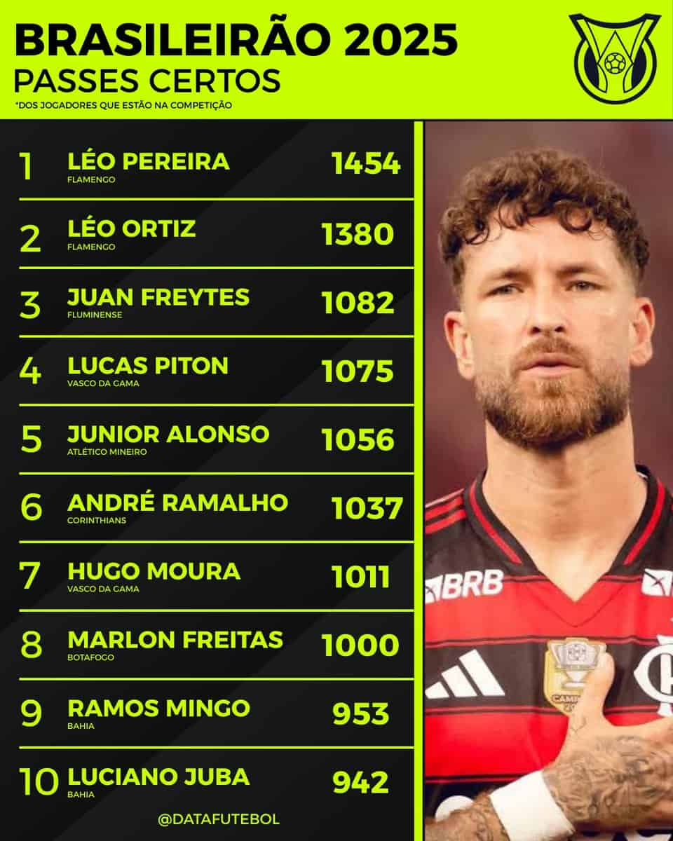 Lucas Piton e Hugo Moura se destacam em passes certos no Brasileiro 2025: números impressionantes. segunda-feira, 08/09/2025 às 23:30 — Em Últimas notícias