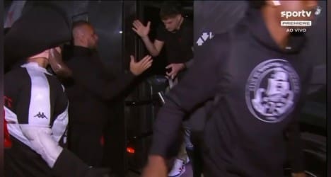 O time do Vasco desembarca em São Januário para partida crucial. Assista ao vídeo da chegada dos jogadores.