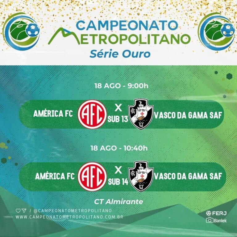 Partidas do Vasco contra o America pela Taça Rio nas categorias Sub-13 e Sub-14 neste domingo. sábado, 17/08/2024 às 22:21 — Em Últimas notícias