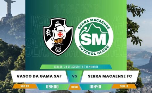 Vasco enfrenta o Serra Macaense pela Taça Rio no Sub-09 e Sub-10 neste sábado quinta-feira, 22/08/2024 às 10:02 — Em Últimas notícias